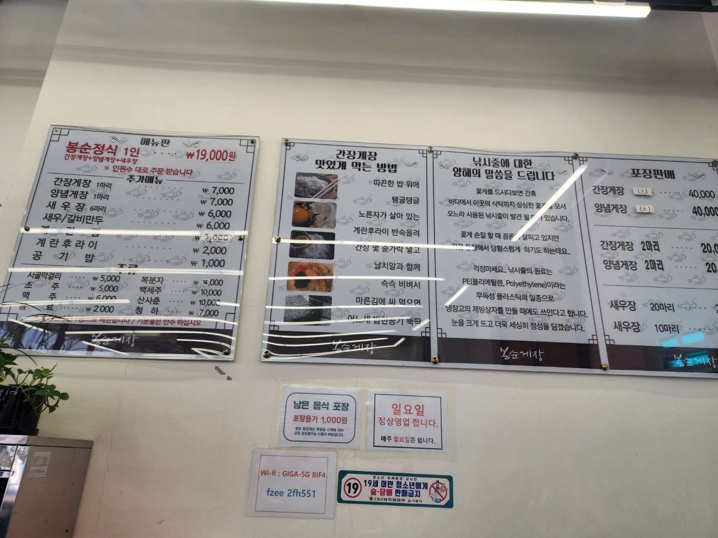 1층에 위치한 봉순게장 물왕 저수지점입니다.