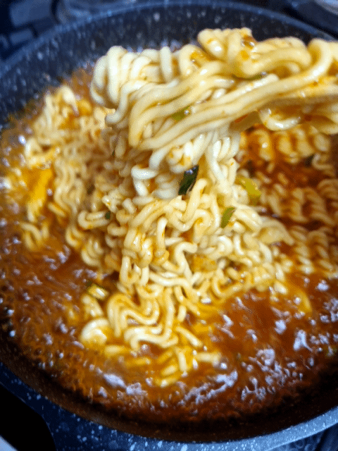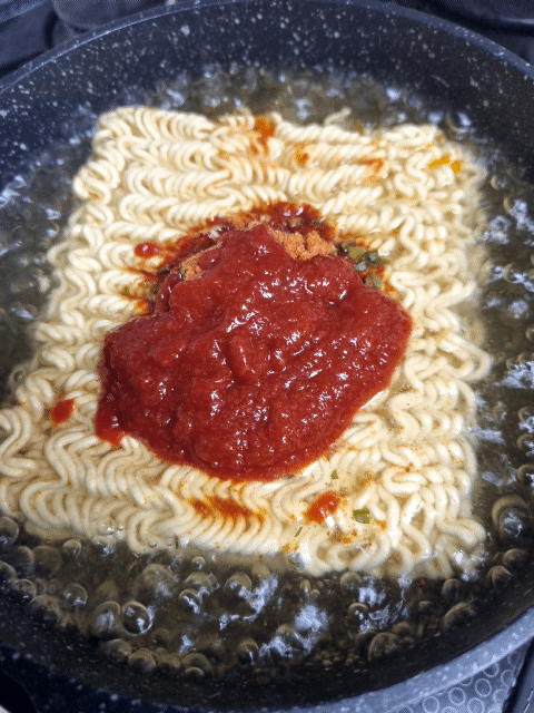그리고 액상스프를 넣으면 바로 국물 색깔과 냄새가 확~ 바뀌더라구요.